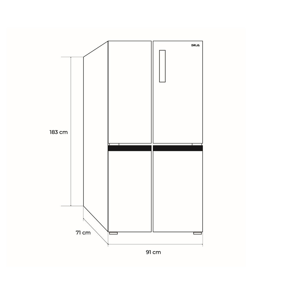 El BLACK-19D4P de DRIJA, con acabado en vidrio templado espejo negro, ofrece una capacidad de 17.9 P³ / 508 L y un diseño French Door con 3 niveles en el congelador para una organización óptima de los alimentos. Su sistema Ultra Fast Cooling garantiza un enfriamiento rápido y eficiente, mientras que las bandejas de vidrio templado y la superficie de fácil limpieza aportan durabilidad y practicidad. Además, cuenta con control de temperatura digital para un ajuste preciso.